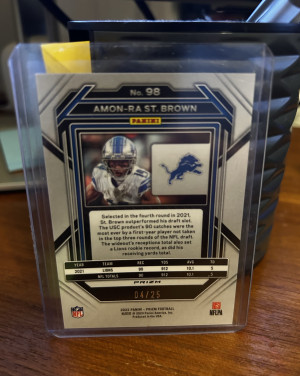 2022 Panini Prizm Amon-Ra St. Brown #98 Blue Camo (04/25) 2nd Year