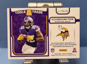 2022 Panini Absolute #TTD-35 Alexander Mattison Tools of the Trade Autograph #/99