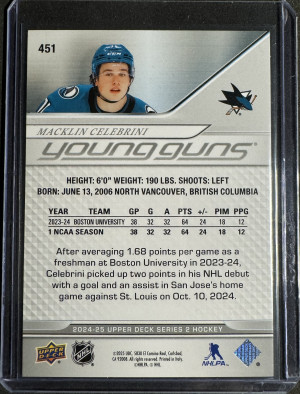 2024-25 Upper Deck 451 Macklin Celebrini Young Guns
