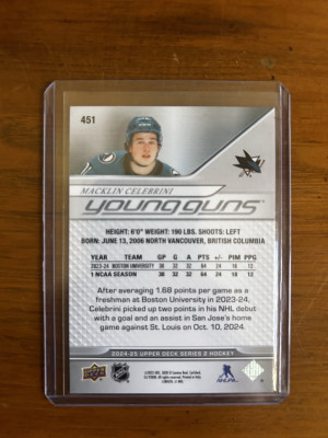 2024-25 Series 2 Macklin Celebrini #451 Young Guns