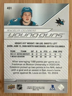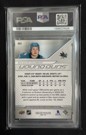 Macklin Celebrini YG Young Guns #451 PSA 8