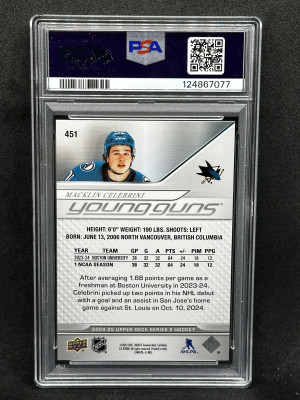 Macklin Celebrini 2024-25 Young Guns Rookie YG PSA 9