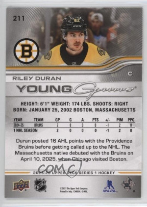 2025-26 Upper Deck Riley Duran #211 Young Guns Exclusives Rookie 002/100
