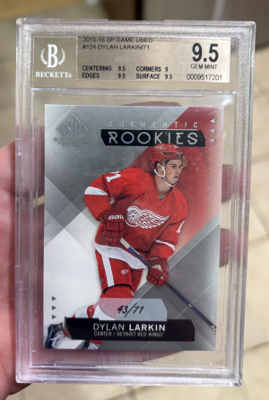 2015-16 Upper Deck SP Game Used Authentic Rookies 43/71 #124 Dylan Larkin BGS 9.5