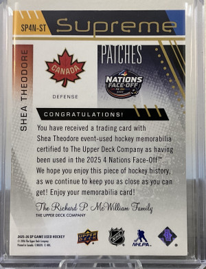 Shea Theodore Supreme Patches 4 Nations Team Canada /15