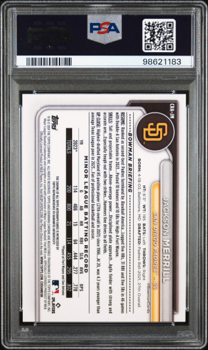 2024 Bowman Chrome Chrome Rookie Autographs Jackson Merrill Rookie Auto-Orange Ref PSA 10