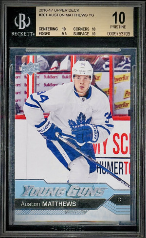 2017-17 UPPER DECK HOCKEY - AUSTON MATTHEWS #201 YOUNG GUNS BECKETT PRISTINE 10 GOLD LABEL