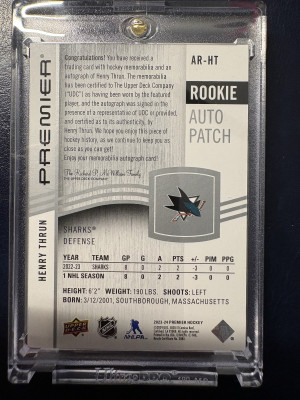 2023-24 Premier, Rookie Patch Auto, Henry Thrun /249