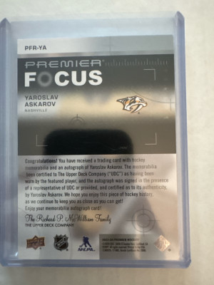 2023-24 Premier - Yaroslav Askarov #PFR-YA Premier Focus Rookie Auto Patch /175