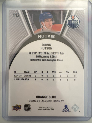 Quinn Hutson, 2025-26 Allure Hockey, Orange Slice