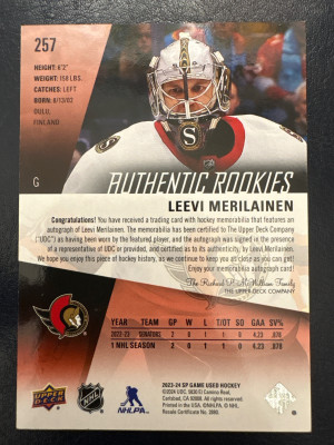 Leevi Merilainen, 2023-24 SP Game Used, Authentic Rookies Jersey Auto /149