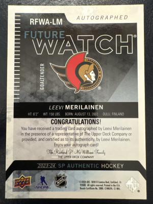 Leevi Merilainen, 2023-24 SP Authentic Rookie Future Watch Auto /699