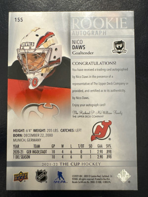 Nico Daws, 2021-22 The Cup, Rookie Autograph /249