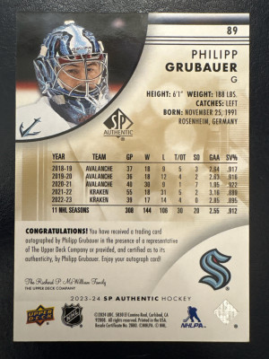 Philipp Grubauer, 2023-24 SP Authentic Limited Auto