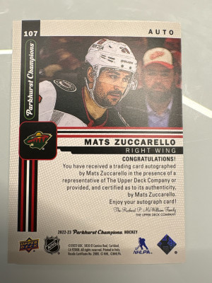 Mats Zuccarello, 2022-23 Parkhurst Champions Auto