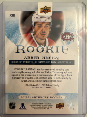 Arber Xhekaj, 2022-23 Artifacts, Rookie Auto