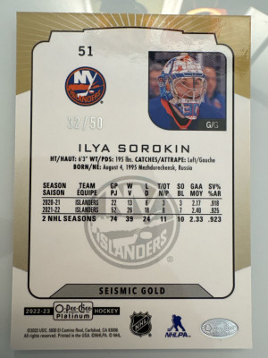 Ilya Sorokin, 2022-23 O Pee Chee Platinum, Seismic Gold /50