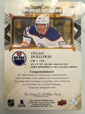 Dylan Holloway, 2022-33 Premier, Premier Rookies, Auto /35