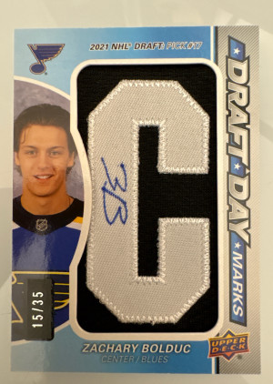 Zachary Bolduc, 2023-24 SP Game Used, Draft Day Marks, Auto /35