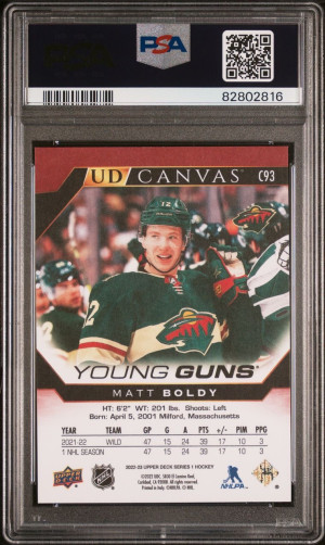 2022-23 UPPER DECK MATT BOLDY YOUNG GUNS CANVAS PSA 10 GEM MINT