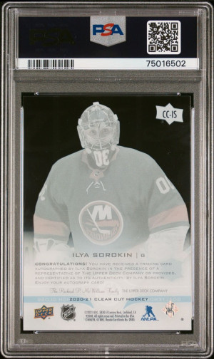 2020-21 UPPER DECK CLEAR CUT ILYA SOROKIN ROOKIE AUTO HIGH GLOSS /10 PSA 9 MINT