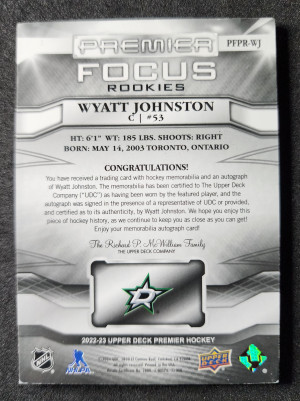 Wyatt Johnston /125 Premier Focus Rookies Auto