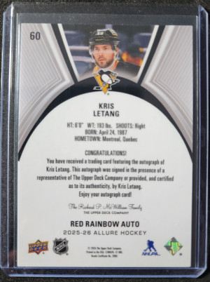 Kris Letang Allure Red Rainbow Auto