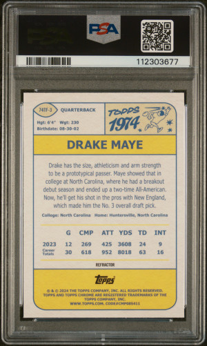 2024 Topps Chrome 1974 Topps Football Drake Maye #74TF3 Ref PSA 10