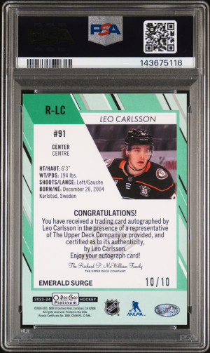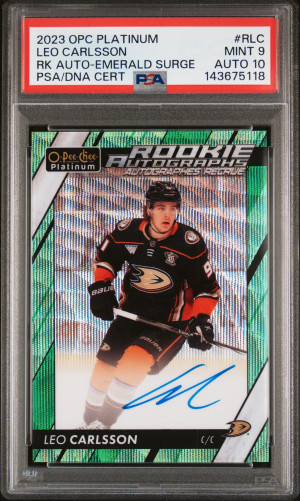 2023 Upper Deck O-Pee-Chee Platinum Rookie Autographs Leo Carlsson Rk Auto-Emerald Surge