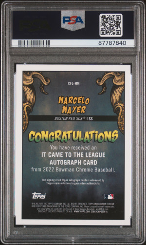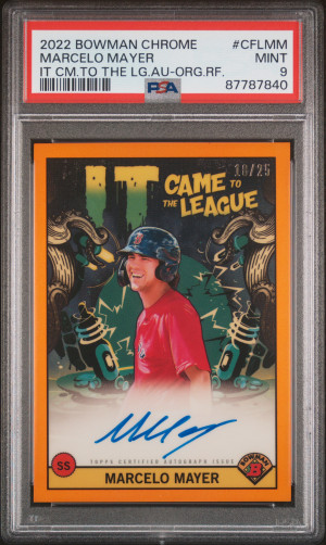 2022 Bowman Chrome It Came To The League Autographs Marcelo Mayer It Cm.to The Lg.au-Org.rf. #/25 PSA 9