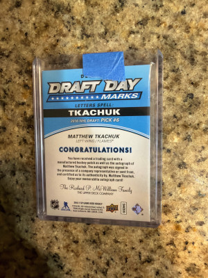 2016 SPGU Matthew Tkachuk Draft Day Marks /35 Rookie Auto