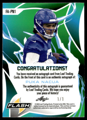 2023 Leaf Eclectic - Flash Auto Metalized Sparkles Gold #FA-PN1 Puka Nacua #/1