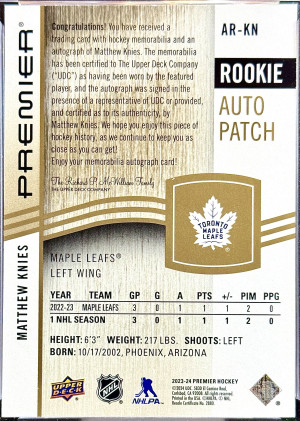 Matthew Knies 2023-24 Premier Gold Acetate Rookie Auto Patch 16/35