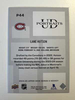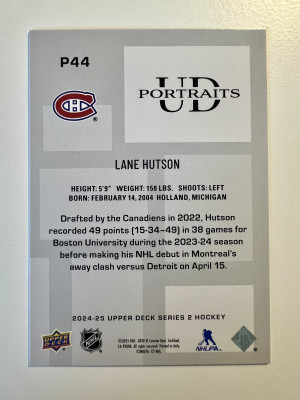 2025 2024-25 Upper Deck UD Portraits Lane Hutson Blue Rookie