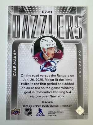 2025-26 Upper Deck Series 1 Dazzlers Cale Makar Blue