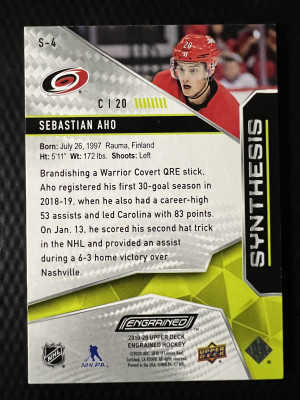 2020 2019-20 Upper Deck Synergy Sebastian Aho Yellow Limited Edition Insert
