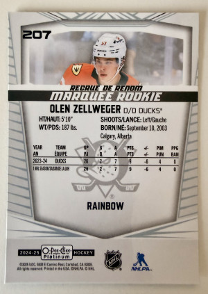 2025 Upper Deck O-Pee-Chee Platinum Olen Zellweger Rainbow Rookie