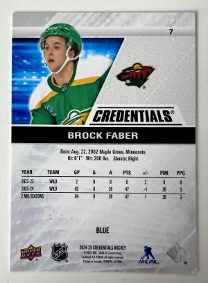 2024 Upper Deck Credentials Brock Faber Blue /299