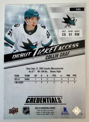 2024 Upper Deck Credentials Debut Ticket Access Collin Graf Rookie /999