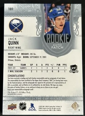 2022-23 Upper Deck the Cup Jack Quinn Patch Auto /249 Rookie