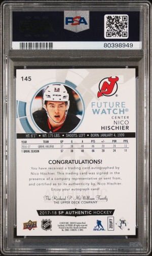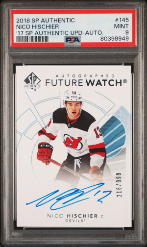2017-18 Upper Deck SP Authentic Update Future Watch Auto 216/999 #145 Nico Hischier PSA 9