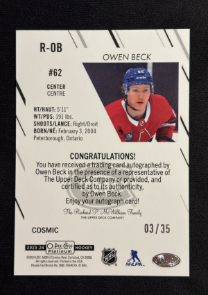 2023-24 Upper Deck O-Pee-Chee Platinum Cosmic Rookie Auto 03/35 #ROB Owen Beck