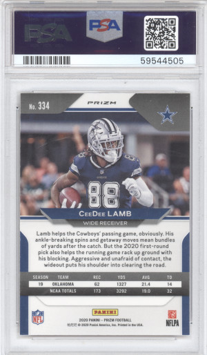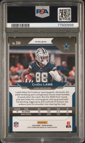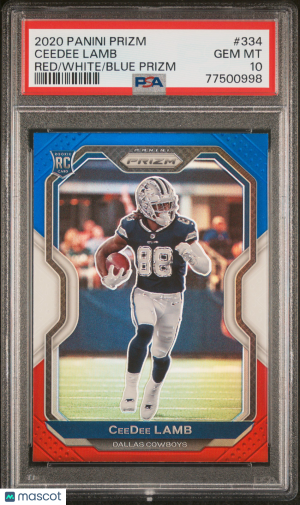 2020 Panini Prizm Football Ceedee Lamb #334 Red White Blue Prizm RC PSA 10