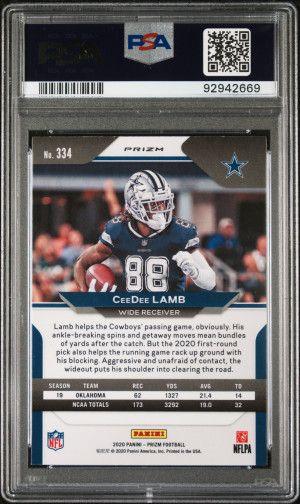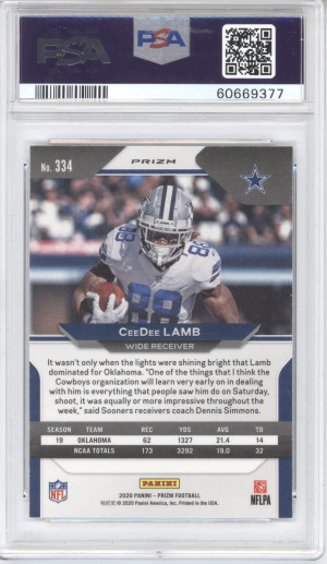 2020 Panini Prizm Football Ceedee Lamb #334 Variation No Huddle RC PSA 10