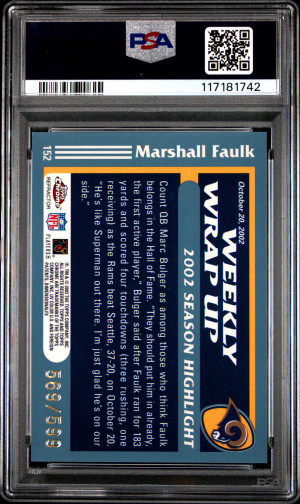 2003 Topps Chrome Football Marshall Faulk #152 Black Refractor 569/599 PSA 9