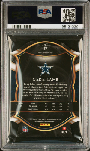 2020 Panini Select Football Ceedee Lamb #57 Silver Prizm RC PSA 10