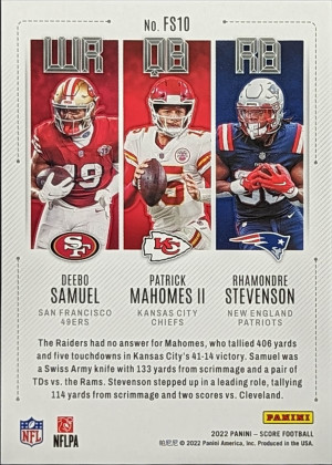 2022 Score Fantasy Stars Insert #FS10 Deebo, Patrick Mahomes, Stevenson [92|FS10]