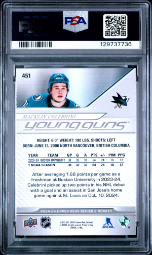 2024 Upper Deck Macklin Celebrini Young Guns PSA 10