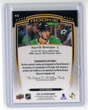 2024-25 Upper Deck Stature Mavrik Bourque Rookie Autograph Green /199 #46