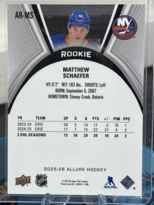 2025-26 Allure Matthew Schaefer Rookie XRC